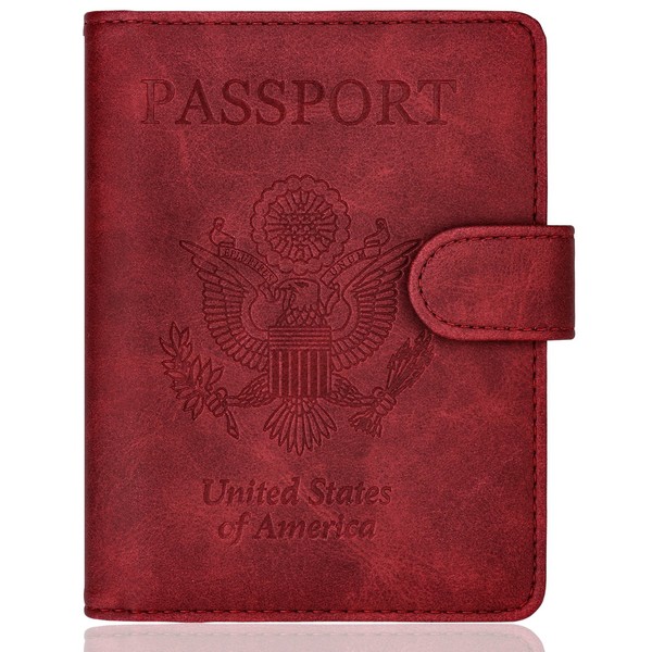 WALNEW Passport Holder Cover Case RFID Passport Travel Wallet, Red