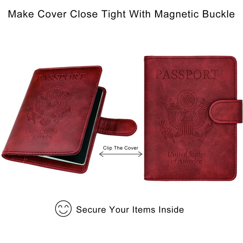 - Security Protective Passport Cover: RFID blocking shield material inside, this RFID Blocking Holder helps prevent personal account information disclosure. Comes with magnetic buckle which can secure items inside, passport cover will not open in your bag