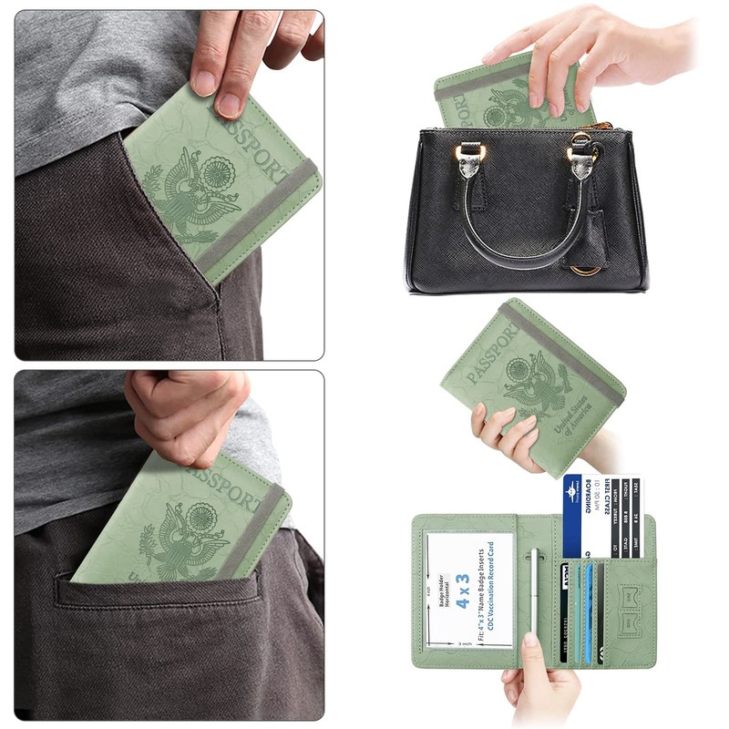 - 【MULTIPURPOSE SLOTS】This passport and vaccine card holder combo has large storage, which includes 1 transparent card slot, 2 passport slots, 4 cards slots for bank card, credit card, driver license and id card, 2 SIM card slots and 1 pen holder. Travel with our passport case makes you easy to access travel documents during boarding and transit.