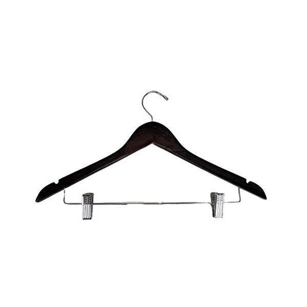 Walnut Finish Wood Combination Hanger with Non-Abrasive Clips (Set of 100)