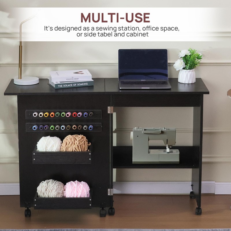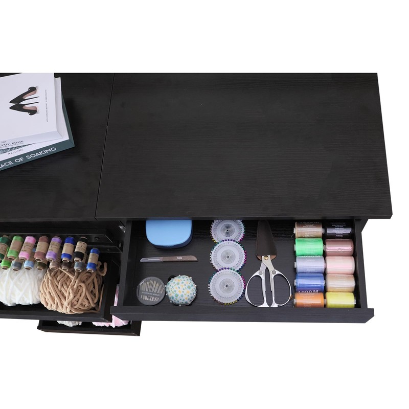 - 【Space-Saving Foldable Design】-Our folding sewing table is able to easily transform into a stylish side table, providing a versatile storage solution that complements any room.