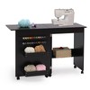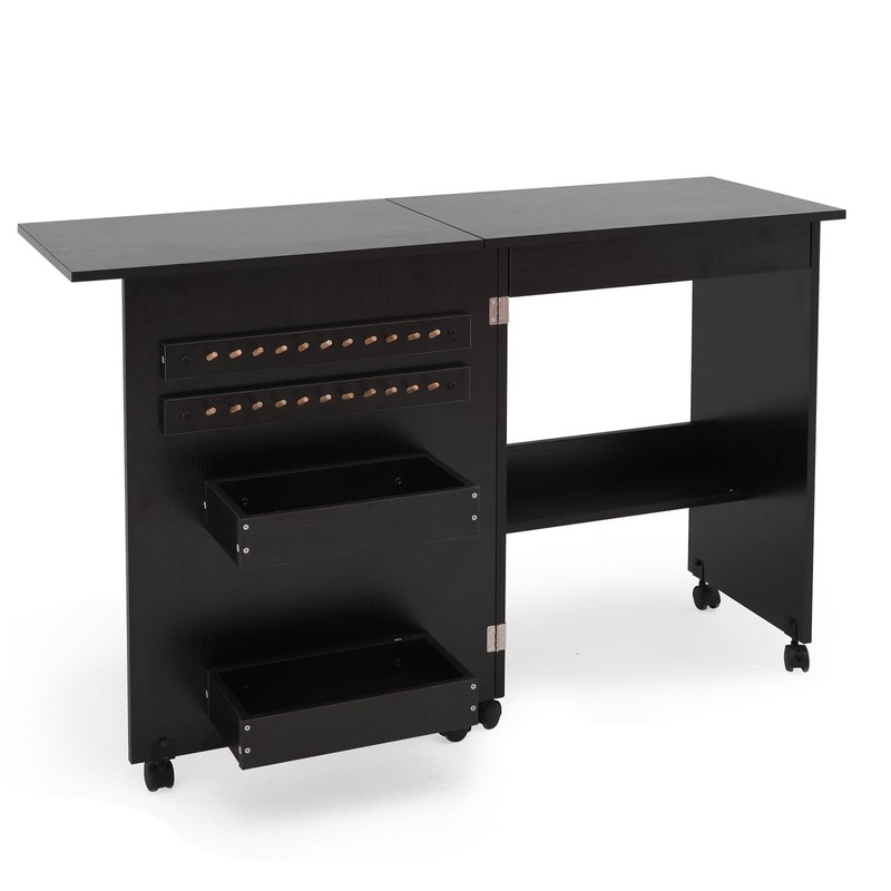 walsport Folding Sewing Table Multipurpose Craft Station & Side Desk with Compact Design, Wheels with Locks,(Dark Brown)