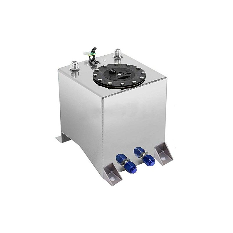 waltyotur 2.5 Gallon Universal Fuel Cell Gas Tank Aluminum Polished Race Street Drift Strip Fuel Cell Tank with Level Sender Silver
