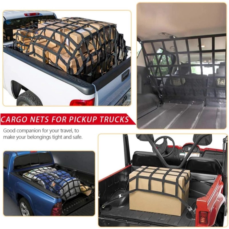 waltyotur Heavy Duty Cargo Net For Pickups Trucks W/Cam Buckles & S-Hooks 1100lb 42" x 50"