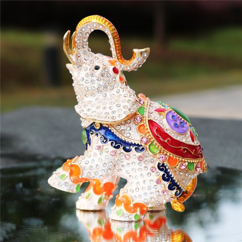 Waltz&F Cute big elephant Trinket Box Hinged Hand-painted Figurine Collectible Ring Holder