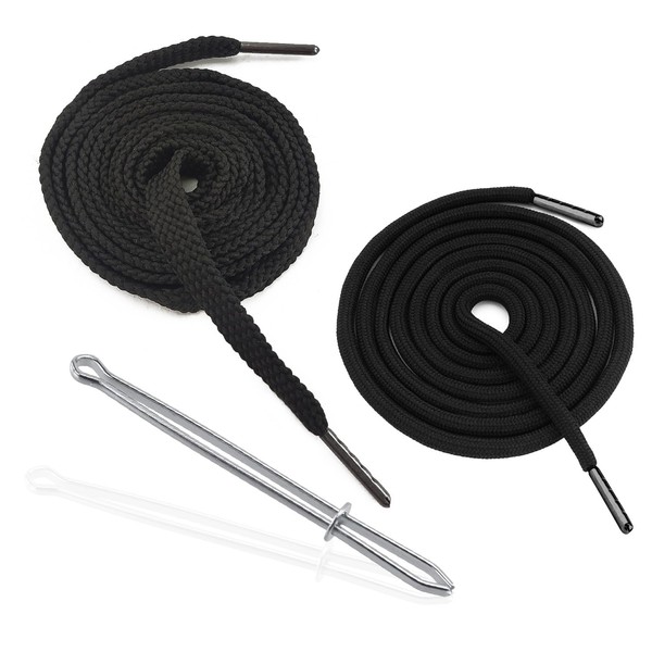 WALWAL 2 Pack 51 Inch Replacement Drawstrings Cotton Drawstring Cord, Suitable for Sweatpants Hoodies Shorts, with Threader Tool(Black)