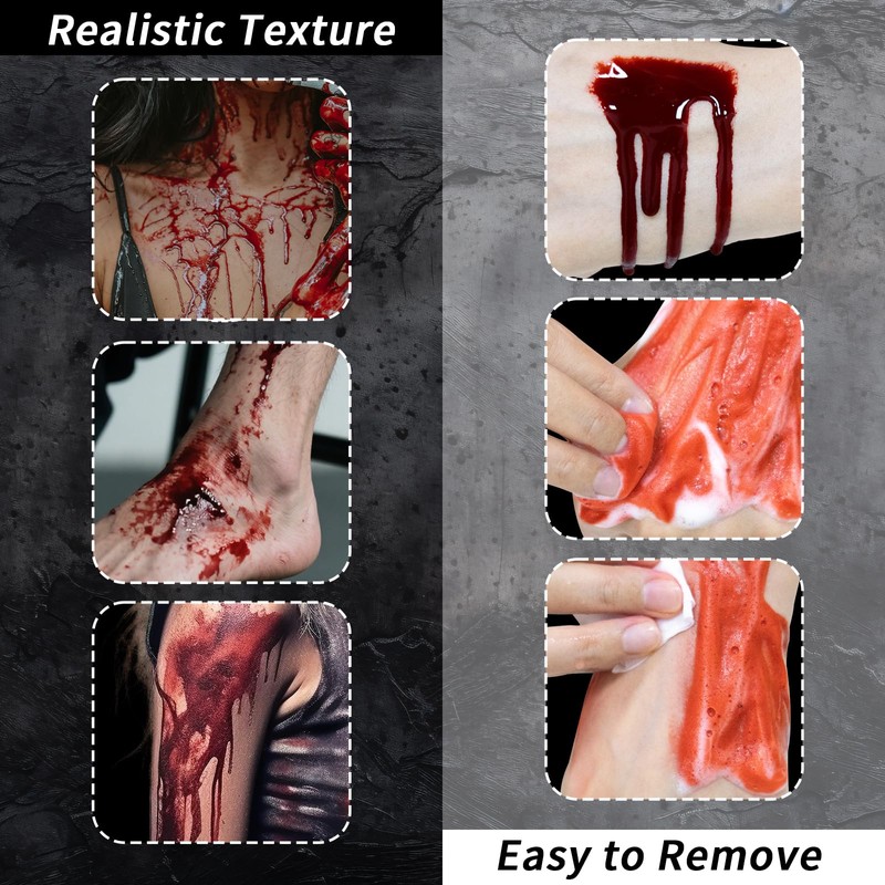 - 【VIELSEITIG VERWENDBAR】Unsere Künstliches Blut eignen sich nicht nur für verschiedene Anlässe wie Halloween-Partys, lustige Mottopartys, Stage Gore, Karnevalspartys, Filmrequisiten usw., sondern auch für Halloween Makeup, Halloween Vampir Schminke, Halloween Zombie Schminke, Theaterblut, Geburtstagsparty Make up, SFX Makeup, Cosplay und verschiedene andere Halloween Kostüm Blut Looks und bieten Ihnen ein rundum perfektes Erlebnis!