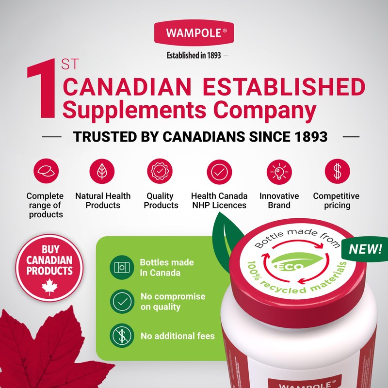 - TRUSTED BY CANADIANS FOR OVER A CENTURY: Since 1893, Wampole Brand Inc. has been recognized as a Canadian leader in high-quality nutritional and herbal products from coast to coast.