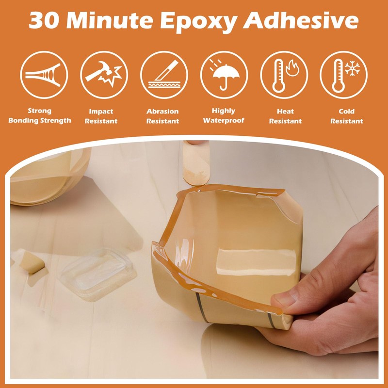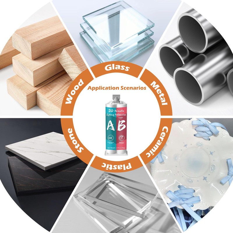 - COMPATIBLE FOR VARIOUS MATERIALS: Epoxy resin glue can bond different materials: Ceramics, porcelain, glass, acrylic, plastic, wood, metal, stone, etc., to realize long-lasting bonding and repair