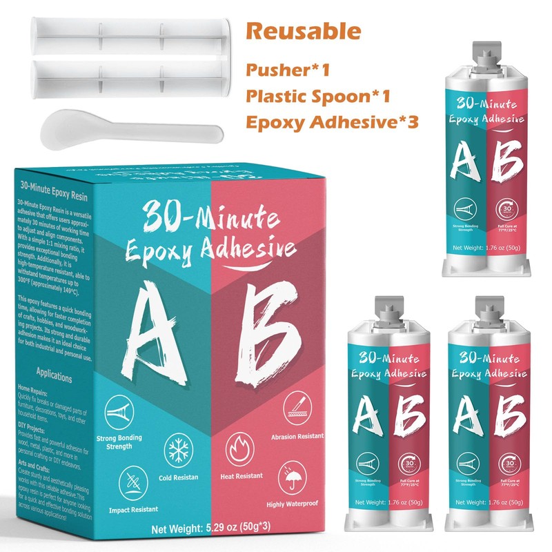 WAN2TLK 30 Minute Epoxy Adhesive 3PCS, 2 Part Epoxy Glue Clear, Slow Curing DIY Epoxy Adhesive for Repairing Ceramics, Porcelain, Glass, Acrylic, Plastic, Wood, Metal, Stone, etc