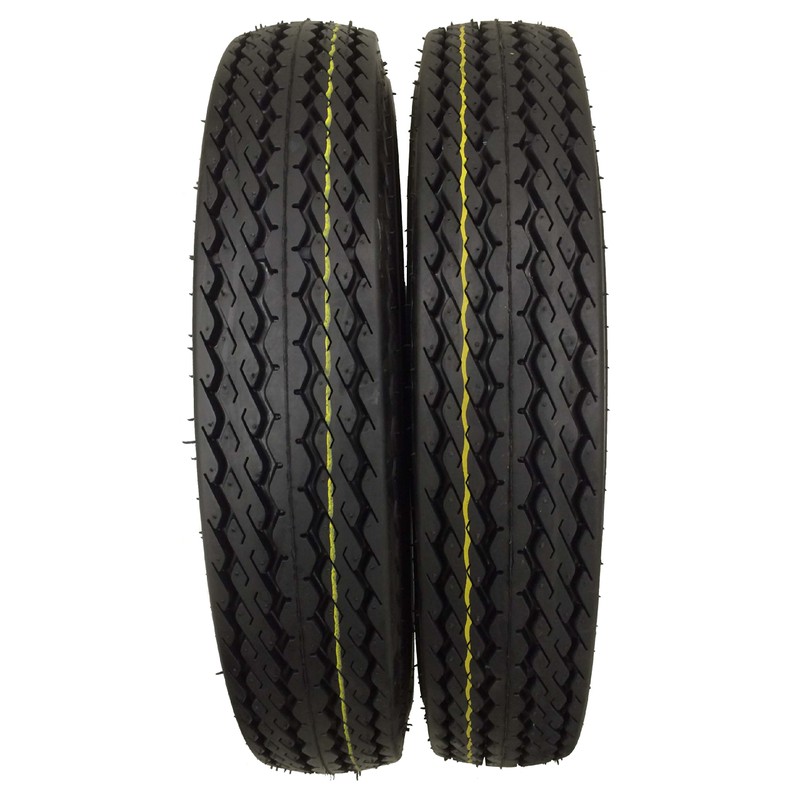2 new 5.30-12/6PR boat motorcycle trailer tires All of our tires are brand new, with first quality and have never been mounted. This tire has been wholesaling by large volume to trailer manufacturers and tire dealers nationwide. Buy and use our tires with confidence!Tire Specifications Tire Size: 5.30-12 Brand: WANDA Pattern: P811 Ply Rating: 6 Load Range: C Overall Diameter: 21.46" Section Width: 5.5" Tread Depth: 0.26" Max Load - Single Tire: 1045lbs@80psi Rim Width: 4.25" Weight lbs: 9.8 lbs