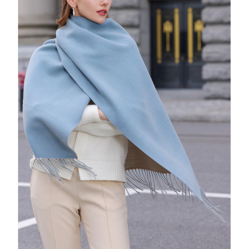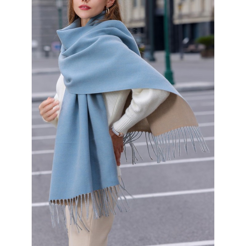 Wander Agio Womens Thick Blanket Scarf Long Shawl Large Scarves Cashmere Feel Double-side Pure Shiny Candy Color Grey Blue 13