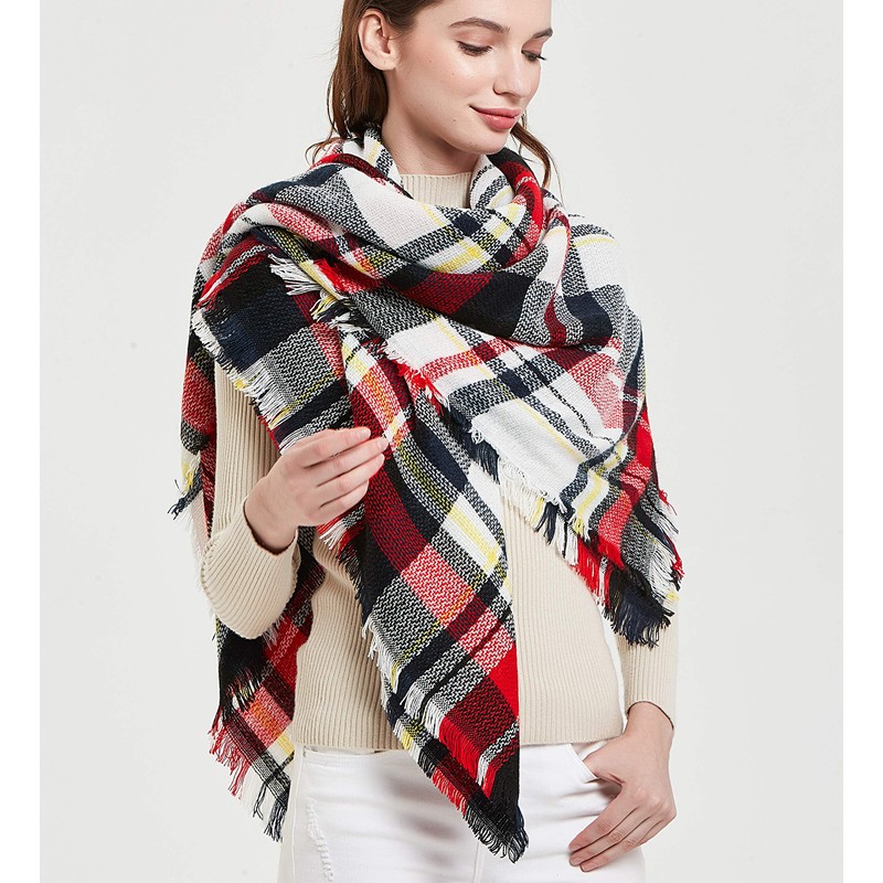 Wander Agio Womens Warm Scarf Square Shawls Infinity Scarves Stripe Big Plaid White Red 4