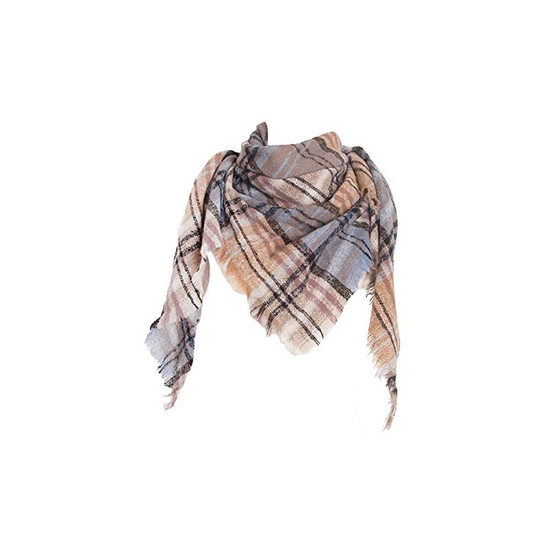 Wander Agio Womens Warm Winter Scarf Triangle Shawls Scarves Stripe Plaid Fichu Rough Brown 02