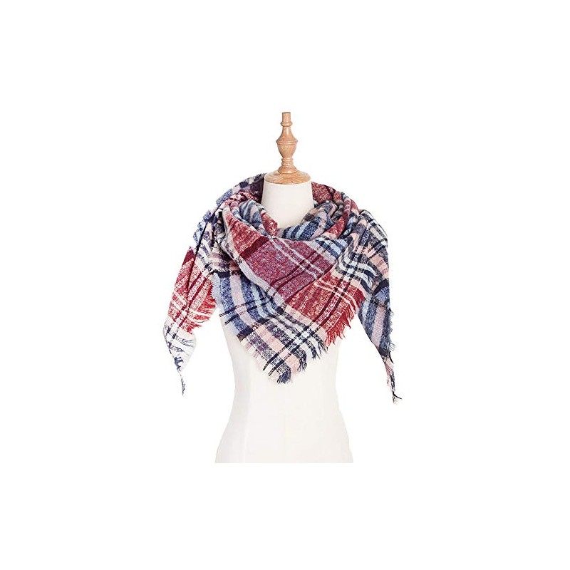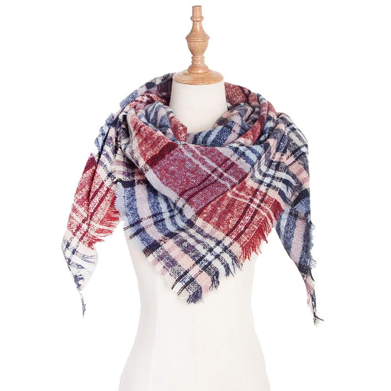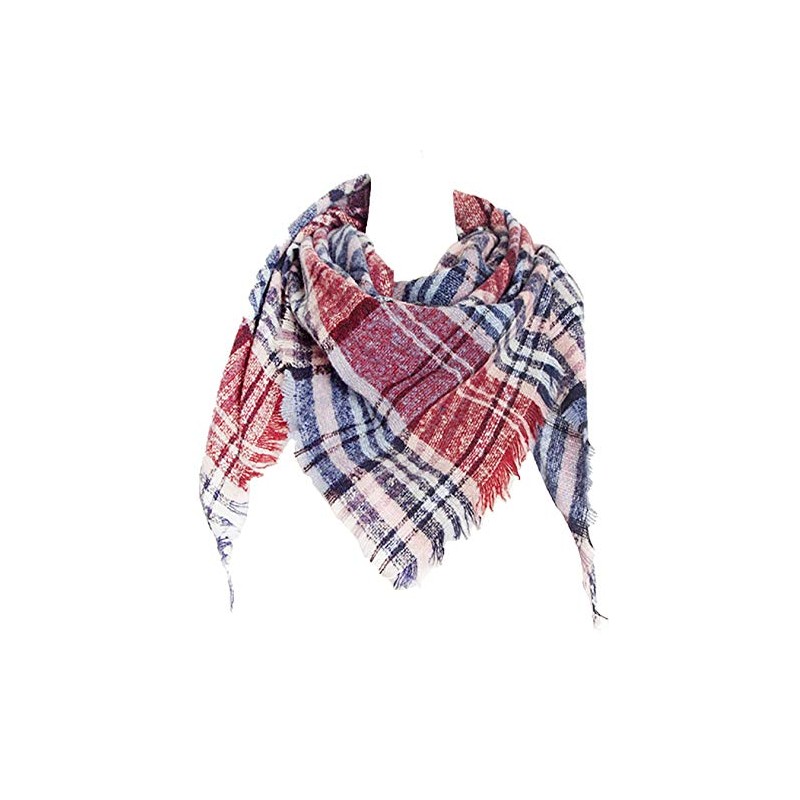Wander Agio Womens Winter Warm Scarf Triangle Shawls Scarves Stripe Plaid Fichu Rough Surface Wine Red 04