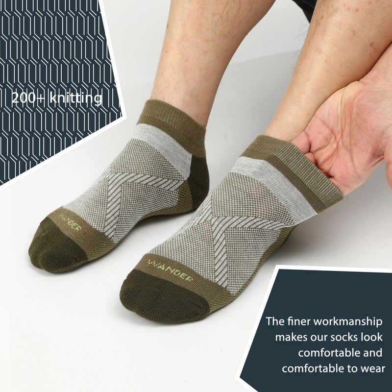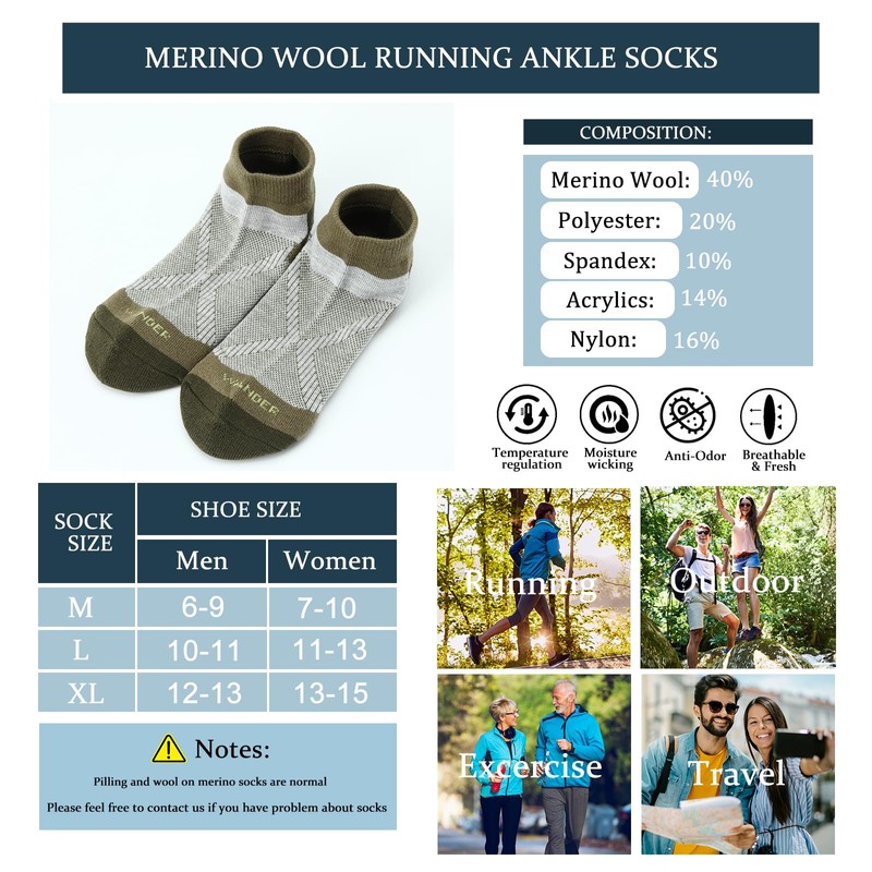 WANDER Breathable Running Ankle Socks 3 Pairs Merino Wool Cushioned Compression Support Thermal Low Cut Athletic Socks