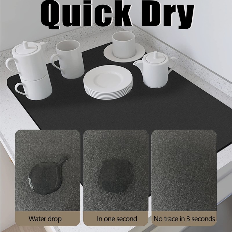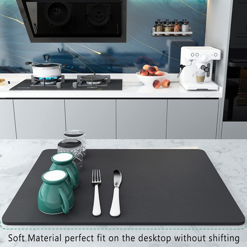 • 【Quick Dry Draining Mat】The 4mm thick draining board mats are breathable and highly absorbent, the special PU surface hide coffee stains, milk stains and any other dark messy stains well, keep your countertop clean and tidy.