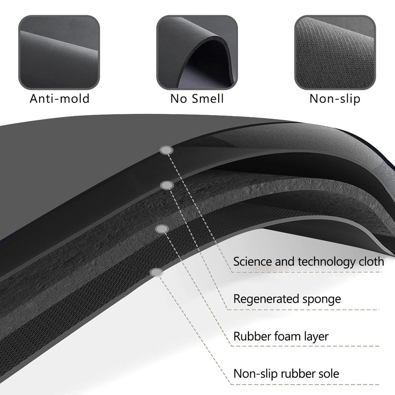 • 【Four Layers Design】The surface of the coffee machine draining board mats is made of PU material, which prevents the mat from getting stained by coffee making. The second and third layer is a sponge and soft rubber foam that makes the liquid penetrate and absorb quickly. The bottom is rubber, which is breathable, non-slip, to prevent dishes on the mat from falling off accidentally, meanwhile, preventing spills from getting dirty on the table, keeping the counter clean.