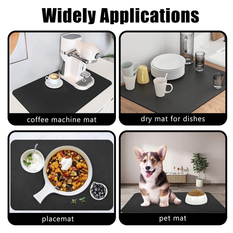 5.It is not only be used as a coffee pad or catches drips under a dish drying rack to keep the counter dry and clean, but also widely used as a tableware drying pad for tableware and cups in kitchens, bar, and bathroom.