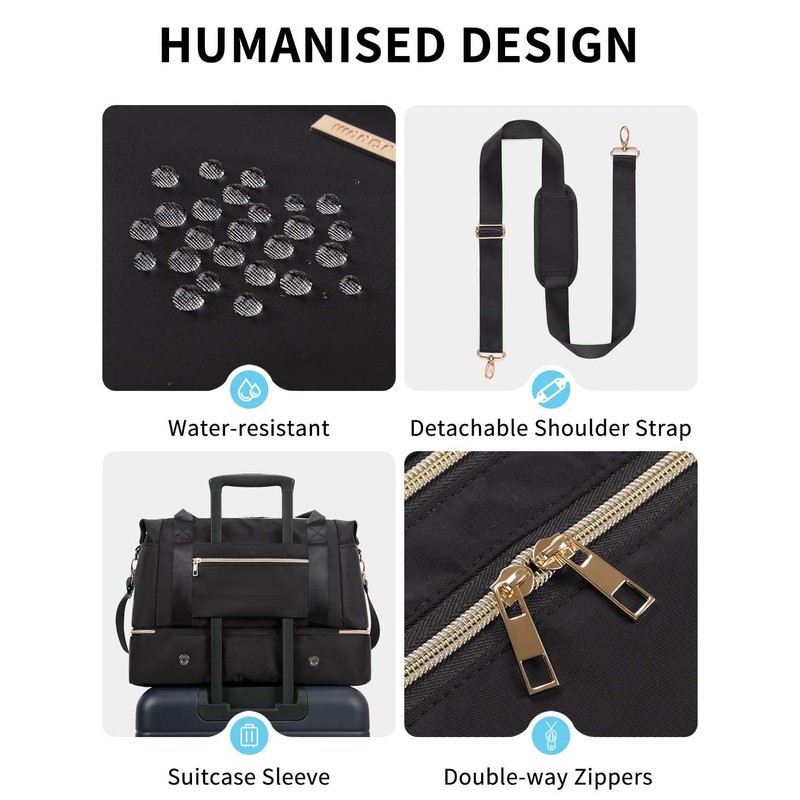 - 【Airline-friendly Carry-on Design】Our travel bag includes padded dual handles + adjustable shoulder straps for comfort. The trolley sleeve slides over rolling luggage, while a zippered pocket secures passports/phones. Use as a flight bag or overnight bag for women.