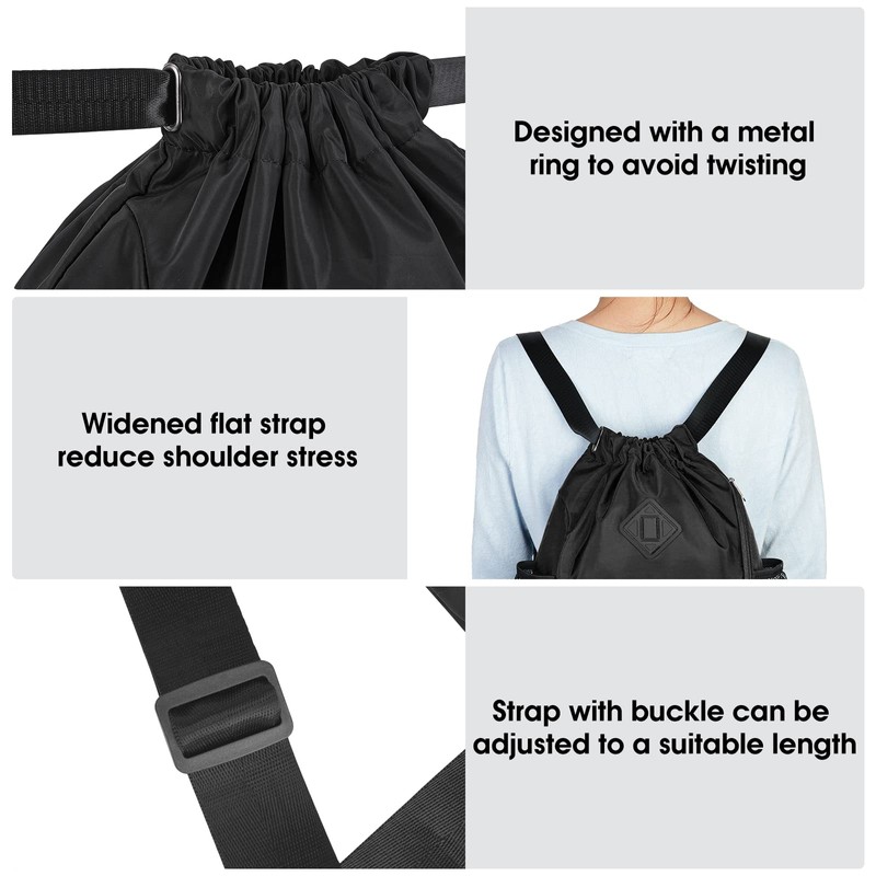 • Organized Multi-Pockets: The string backpack includes a concealed back pocket designed to keep your cell phone and wallet secure. Additionally, a front zipper pocket offers easy access to keys or ID cards, eliminating the need for digging. The two side mesh pockets are ideal for keeping cold water bottles or wet umbrellas separate from your other belongings.