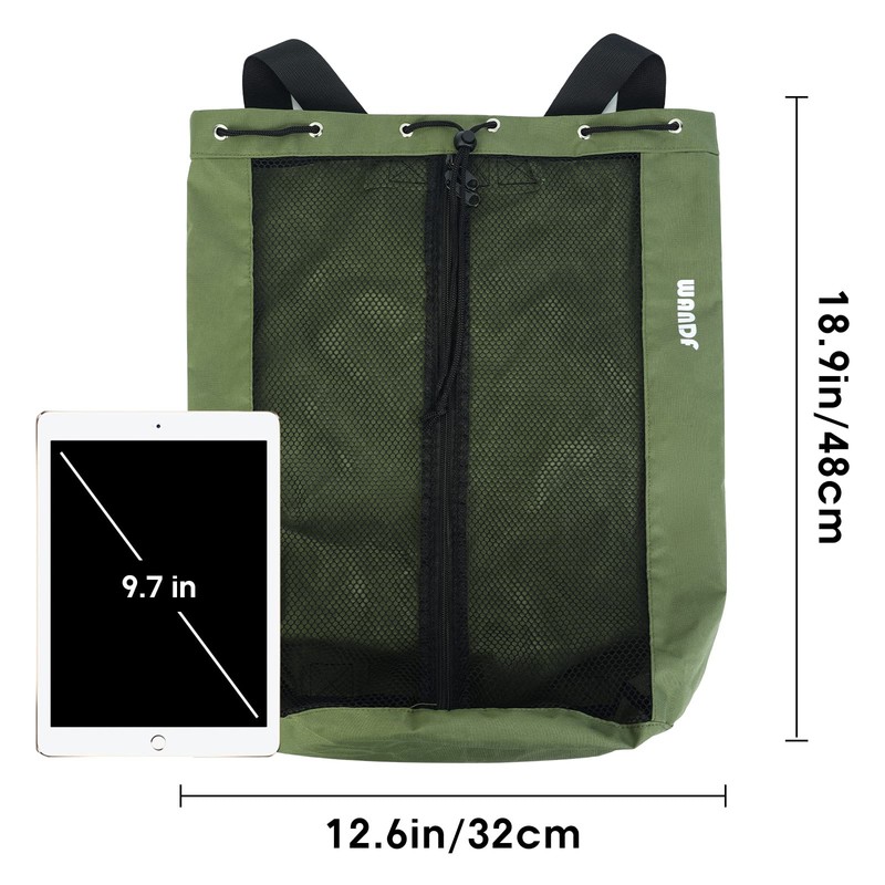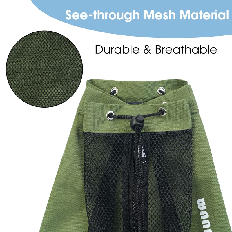 WANDF Swim Bag Mesh Drawstring Backpack Beach Backpack for Swimming, Gym, and Workout Gear(.Dark Green)