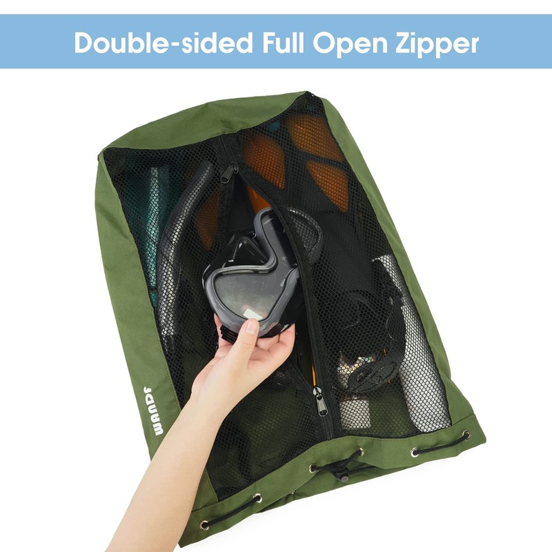 - Full-open design for easy access: Unlike traditional backpacks with a single top opening, our beach mesh backpack features two zippers that runs along the entire length of the backpack, allowing you to fully open it and easily access your gear.