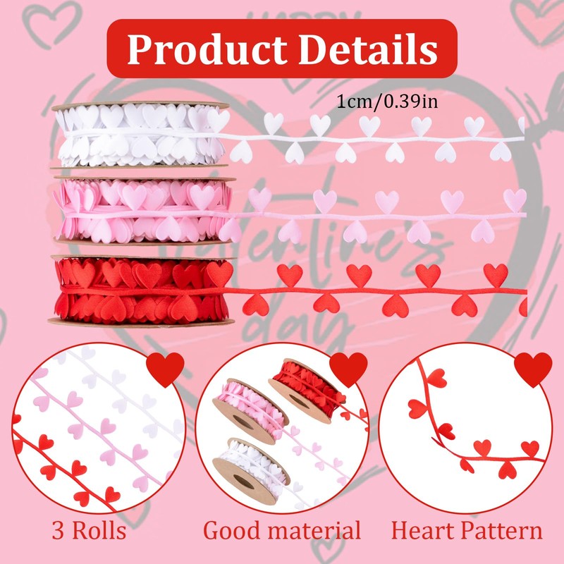 - SIZE AND PACKAGING: This package contains 3rolls 5Yards Happy Valentine's Day satin ribbons.