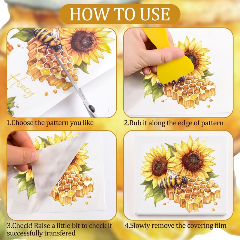WANDIC 3 Sheets Honey Rub on Transfer Stickers Honeybee Decals Waterproof Stickers Furniture Decals for DIY and Home Decoration ,15*30cm