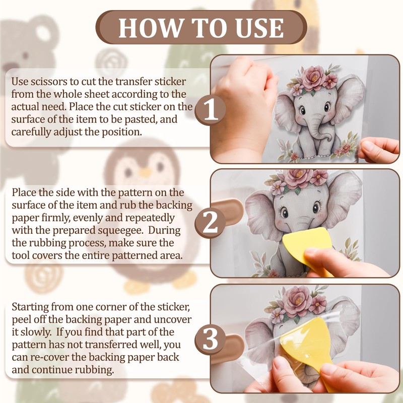 PACKAGE CONTENT: You will receive 3 sheets of beautiful and vivid rub on transfer stickers in three styles, each transfer sticker measures 15*30cm.
