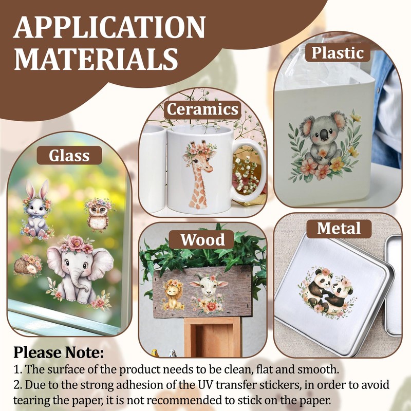 - HIGH QUALITY MATERIAL: These UV transfer stickers are made of high quality paper, which can be effectively waterproof and won't fade after a long time of use, and the patterns have a 3D effect, bright and delicate.