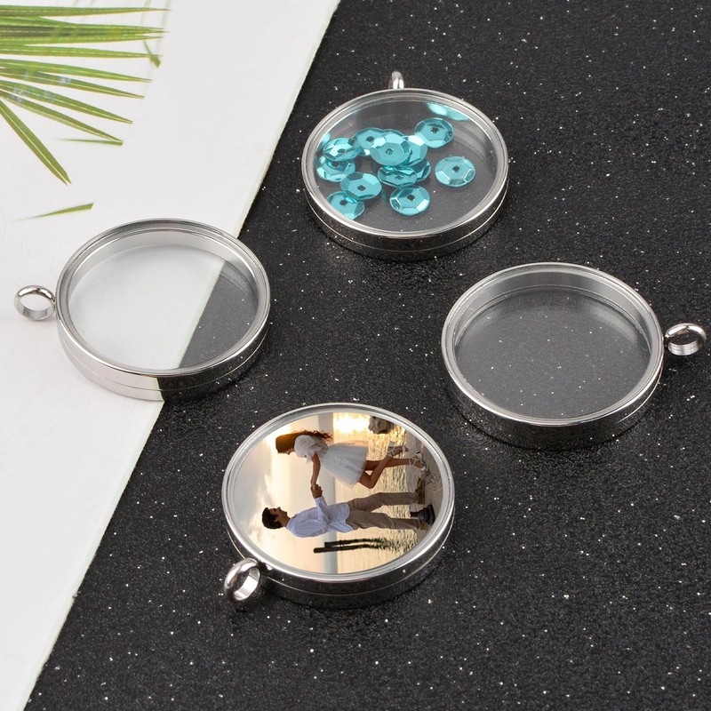 Unique Design: These photo frames display photos through transparent glass, with small rings on them that can be made into necklaces or key chains. These frames are screw thread styles and can be easily opened and closed.