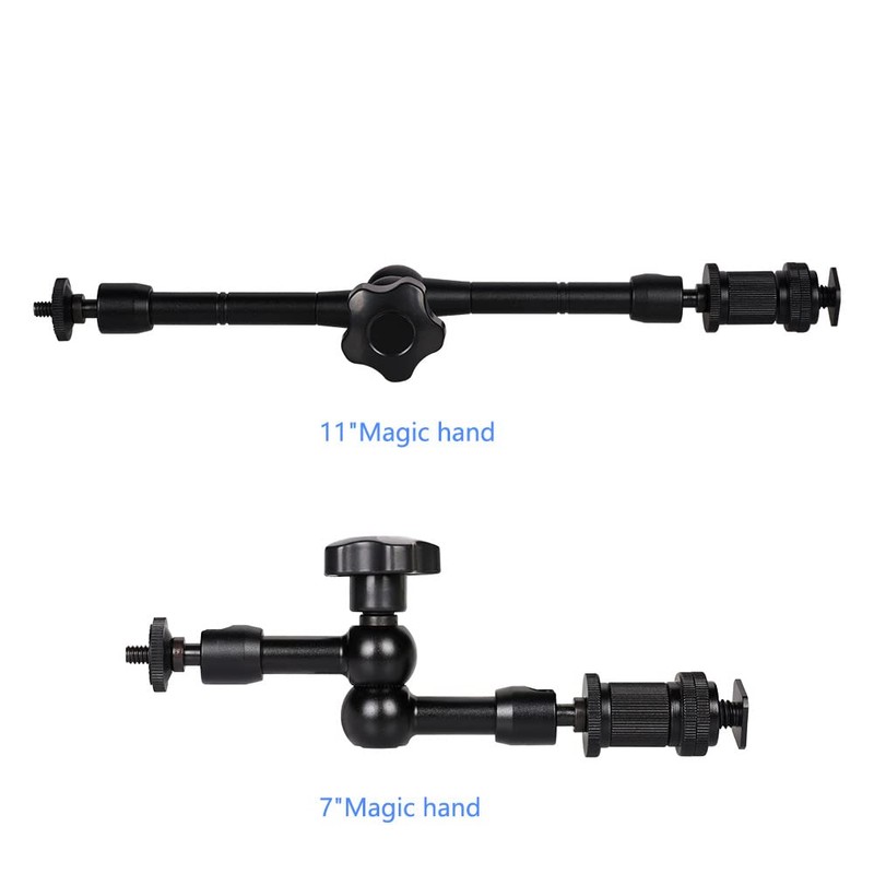 - This 11 inch magic arm allows easy attachement of devices monitor,flash light,led lights,mic,cage, smartphone and more.