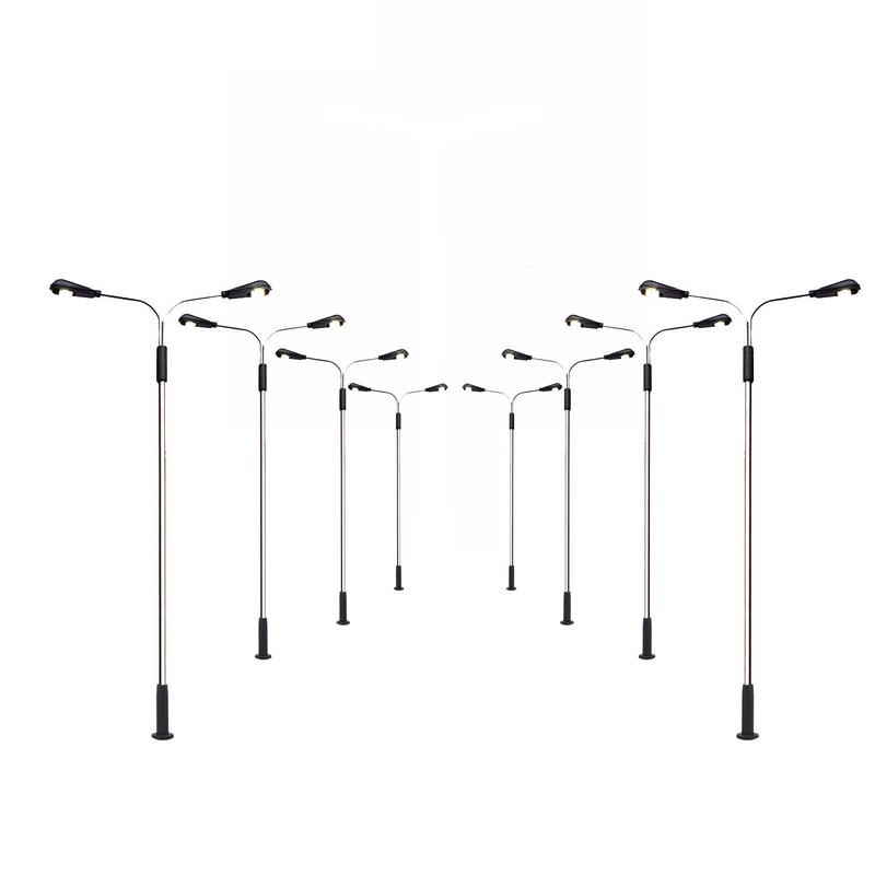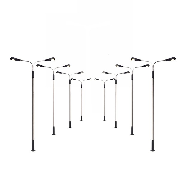 WANGCL Model Railway Train Lamp Post LED Street Light Lamps Metal Double Head Illuminated Street Light HO OO Scale Pack of 8
