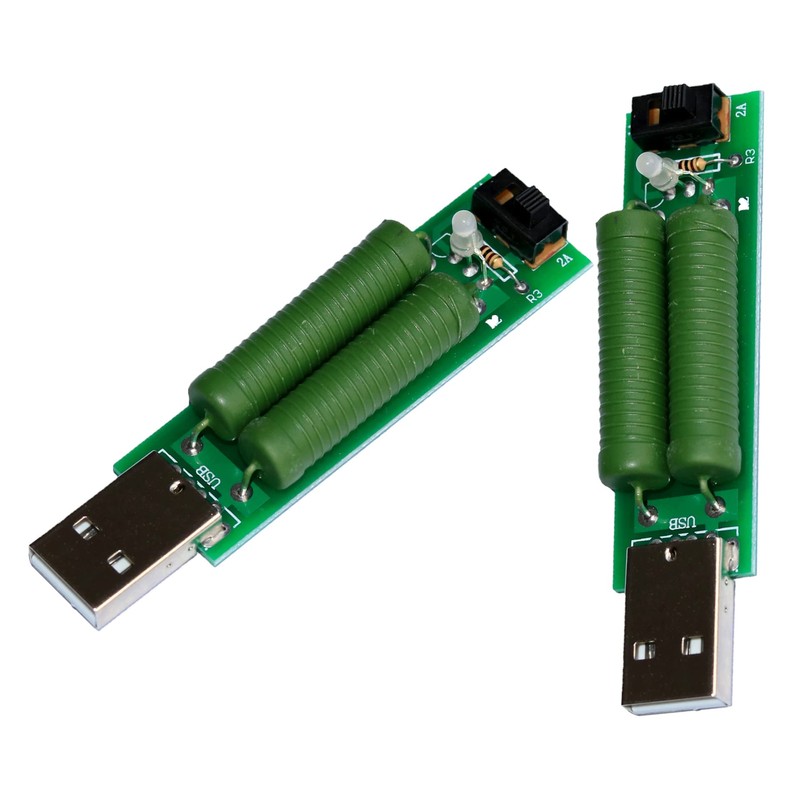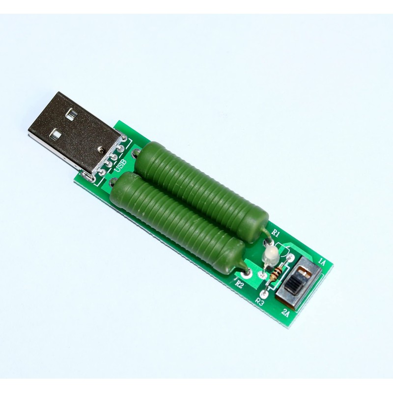 This USB charging can be used with USB testers to test the charging performance of rechargeable batteries, chargers, etc. It is simple and convenient. The current can be controlled by adjusting the resistance value by means of a push button resistor 1A/2A.