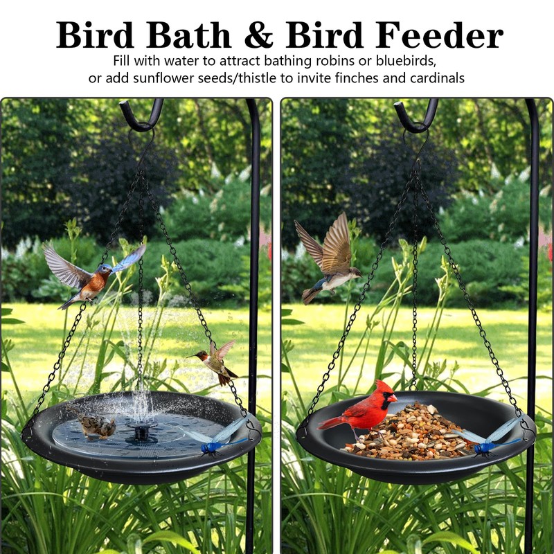 • 2-in-1 Bird Bath & Feeder – Versatile Use:Switch roles effortlessly: Fill with water to attract bathing robins or bluebirds, or add sunflower seeds/thistle to invite finches and cardinals. The deep bowl design keeps seeds dry in light rain, making it a year-round feeding station