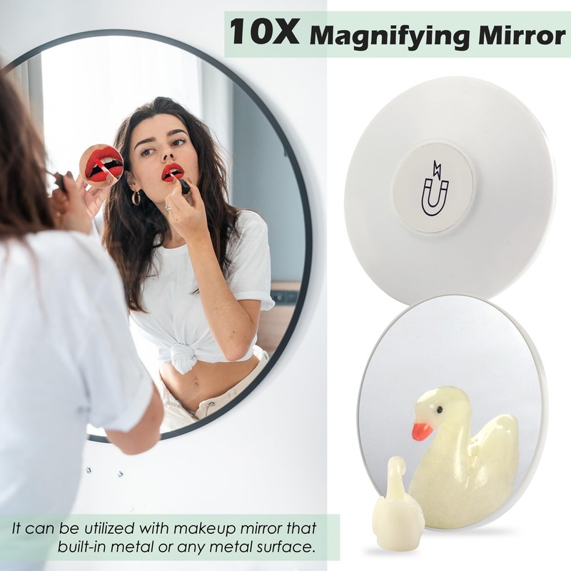 - · 【Consejos cálidos】Debido a la naturaleza del espejo de aumento, mantén el espejo de 2 a 3 pulgadas lejos de tus ojos para una visión clara. De lo contrario, la imagen aparecerá distorsionada, borrosa, invertida, etc. Este espejo 10X también se aplica para lápiz labial, rímel, fijación de pestañas, hilo dental o uso de lentes de contacto, etc. Lo que los convierte en una excelente opción para regalar o viajar.
