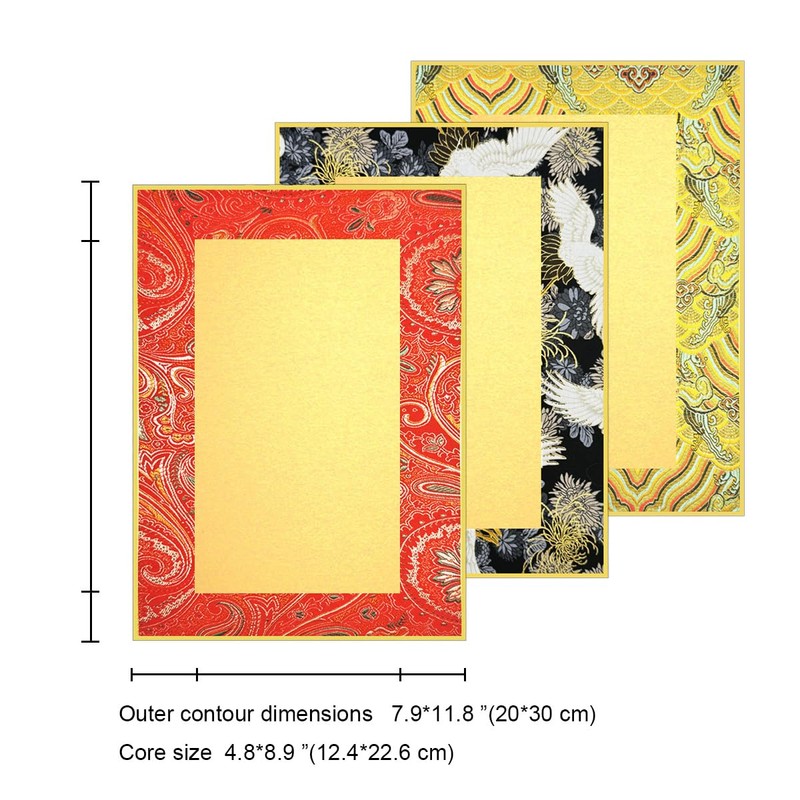 • Exquisite decoration: The edges of the paper are made of high-quality and soft embroidered fabric with a textured feel. The colors of the exquisite fabric are available in yellow, red and black. The patterns are clear, and the edges are decorated with golden foil. The middle is made of golden mature Xuan paper, and the back is gold-sprinkled.