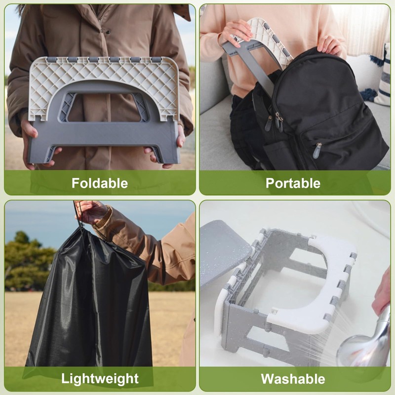 - 🪑【Multi-Function Design】Functions as a portable toilet, footrest, stool, and trash can—perfect for home, camping, travel, and emergency use
