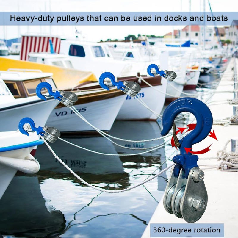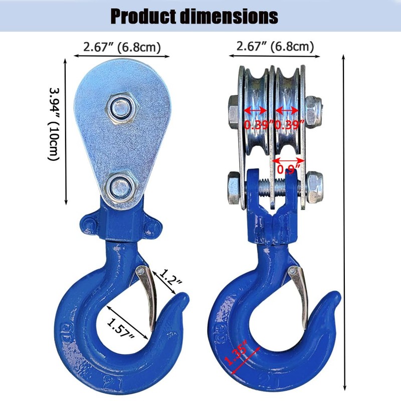 - Secure Swiveling Hook: Equipped with a 360-degree swivel hook and double pulley system, our snatch block pulley allows for smooth and secure connections. The anti-disengagement feature ensures your load stays safely in place throughout the lifting process