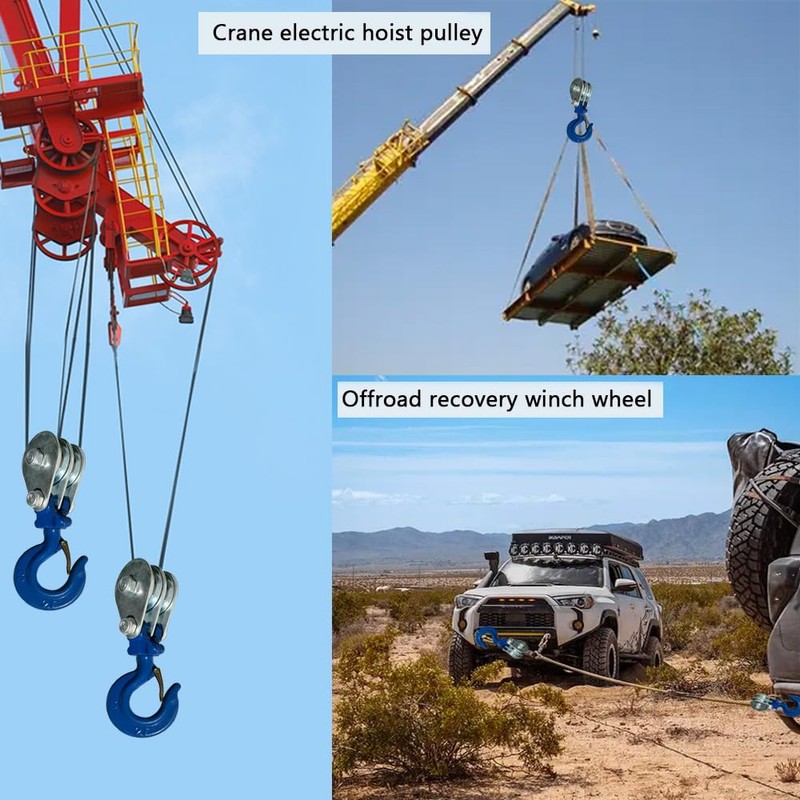 - Sturdy Construction: Crafted from heavy-duty galvanized steel, our towing winch snatch blocks features solid steel wheels with integrated bearings. This design ensures maximum toughness and load-bearing capacity, while the wear-resistant finish protects your wire rope from damage during operation