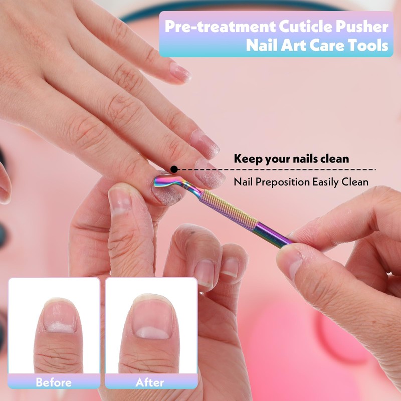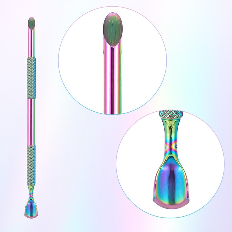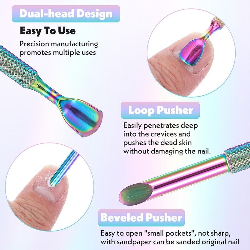 - Doppelköpfiger Nagelhautschieber: Der hufeisenförmige Schieber der Nagelhautschieber passt sich der Krümmung der Nageloberfläche an, wodurch abgestorbene Haut schnell und tief in einen Haufen geschoben werden kann. Der abgeschrägte Nagelschaber kann hartnäckige abgestorbene Haut leicht und sicher hochschieben, und Sie können auch das Schleifpapier auf den Nagelhautschieber kleben, um die Nägel zu polieren. Die Nagelhautfeile beschädigt die Nageloberfläche nicht und hinterlässt keine toten Ecken, geeignet für Anfänger und professionelle Maniküre.