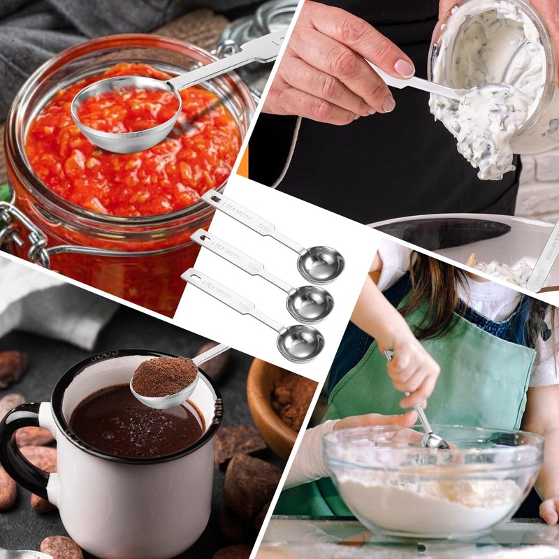 - Package Contents: You will receive 3 pcs silver measuring spoons, measuring 4.65 × 1.18 × 0.92 inches/11.8 × 3 × 1.8 cm. These small stainless steel measuring spoons are available in large quantities to meet your different needs and are convenient for daily replacement