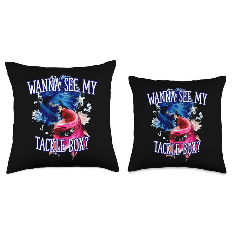 Wanna See My Tackle Box Freshwater Fishing River Fisherman Throw Pillow