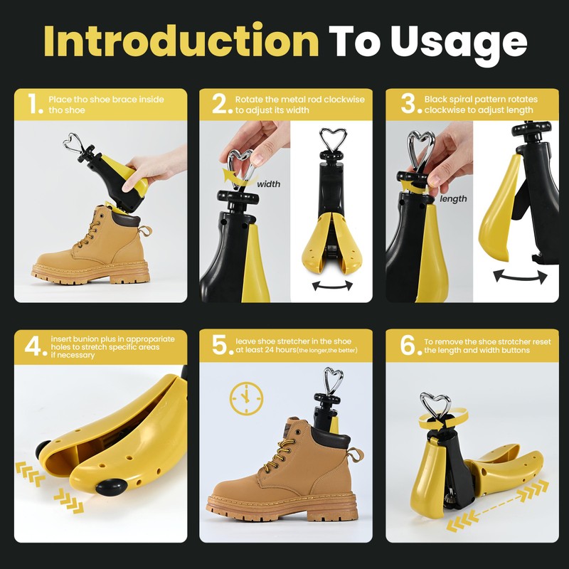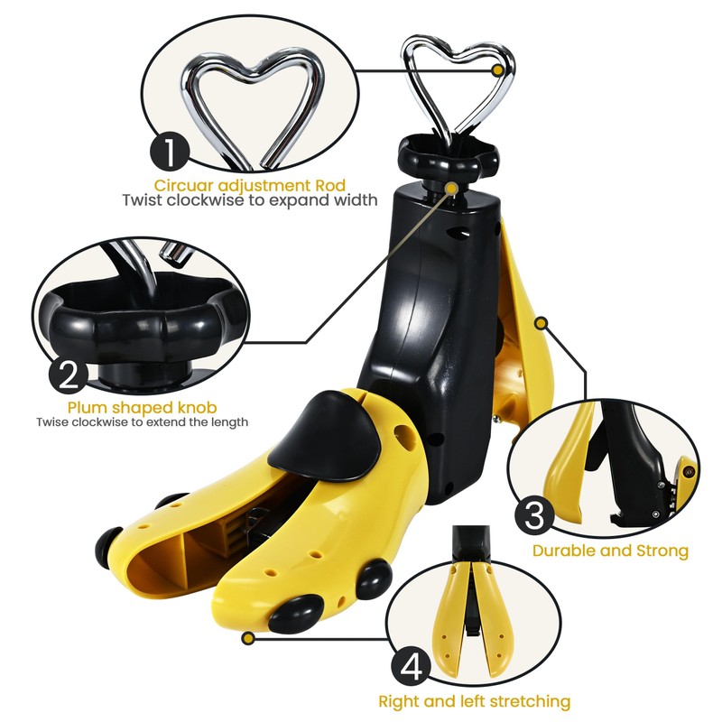 WANNUOQI Shoe Stretcher For Women & Men,Boot Stretcher,Premium Shoe Expander Widener Stretch Length Width Adjustable Shoe Tree Yellow Women Size 9-14, Men's 8-13