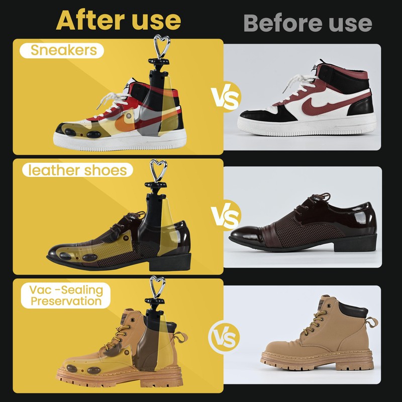 - Maintain Good Shape of ShoeProtect the integrity of shoes Regular use of our shoe stretcher, especially the Shoe Widener Stretcher Function, helps to maintain the original integrity of the boots. It can prevent the shoes from being deformed due to long-term storage or improper wearing, extend the service life of the shoes, and keep your beloved shoes as new. If you give shoe stretcher to the elderly, family, friends and children, can better reflect your care and love for health
