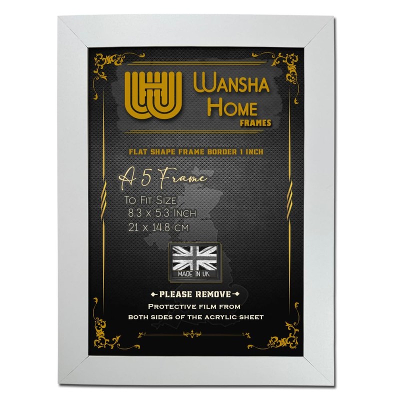 WANSHA HOME A5 White Picture Frames (21 x 14.8 cm) Flat Poster Frame - Clear ...