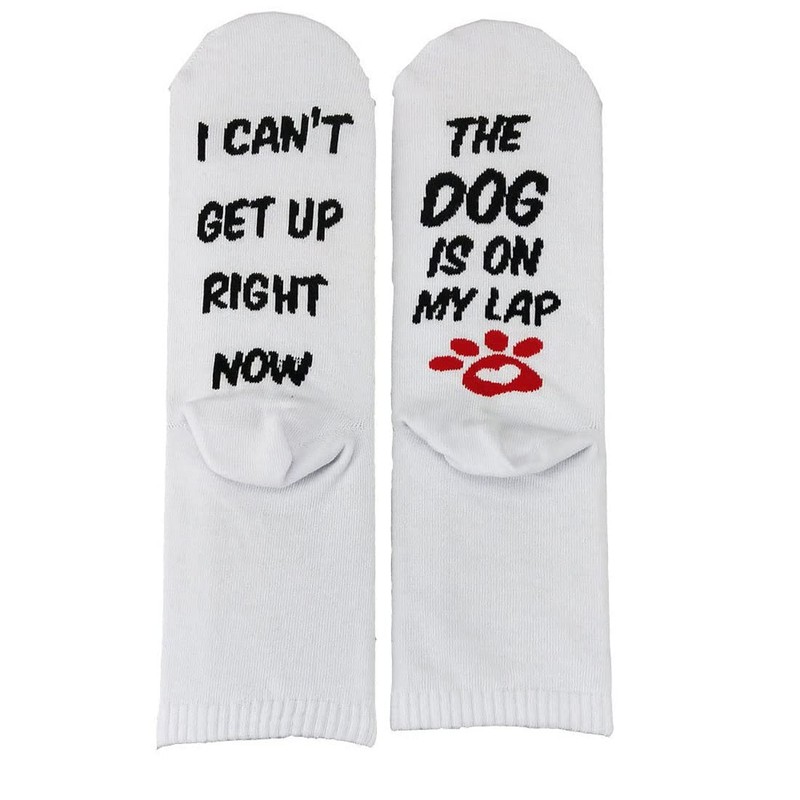 Wansruee I Can't Getup Right Now, The Dog Is On My Lap Funny Letter Print Socks, White, One Size, White