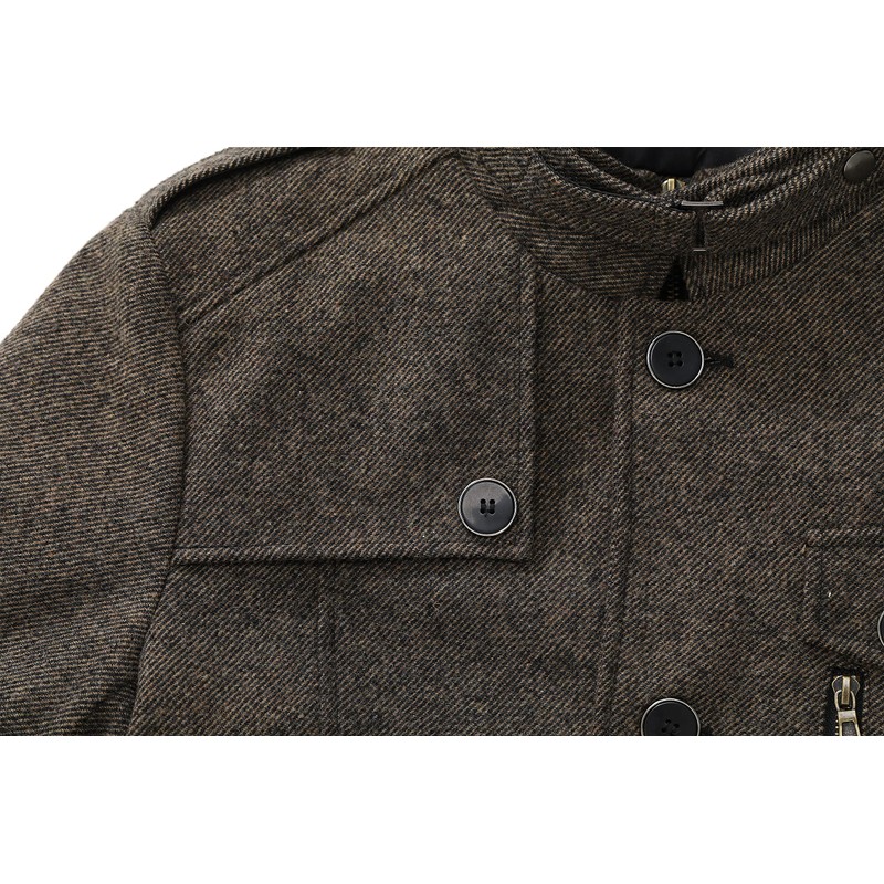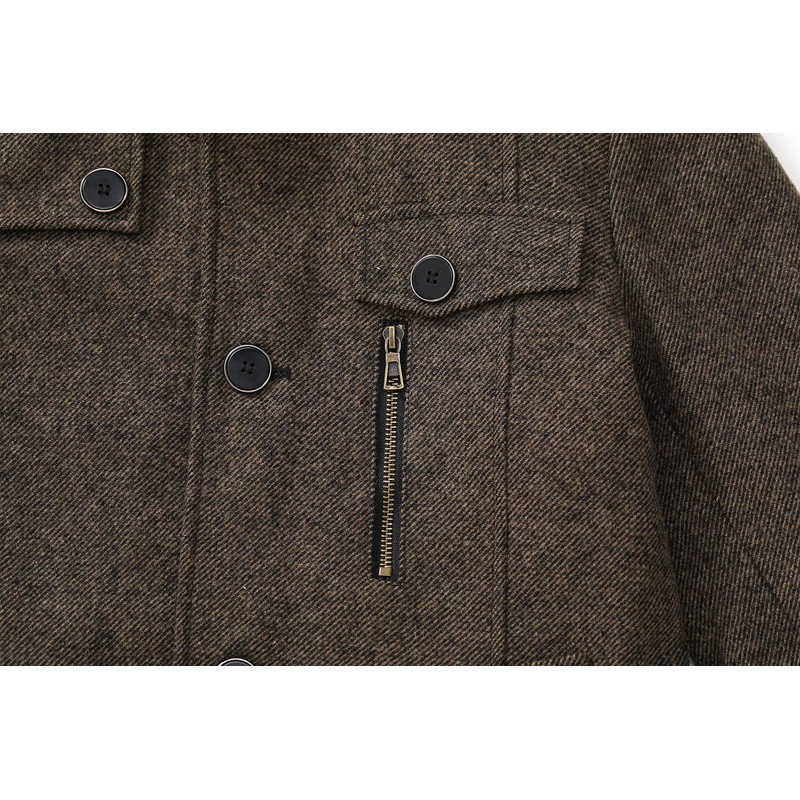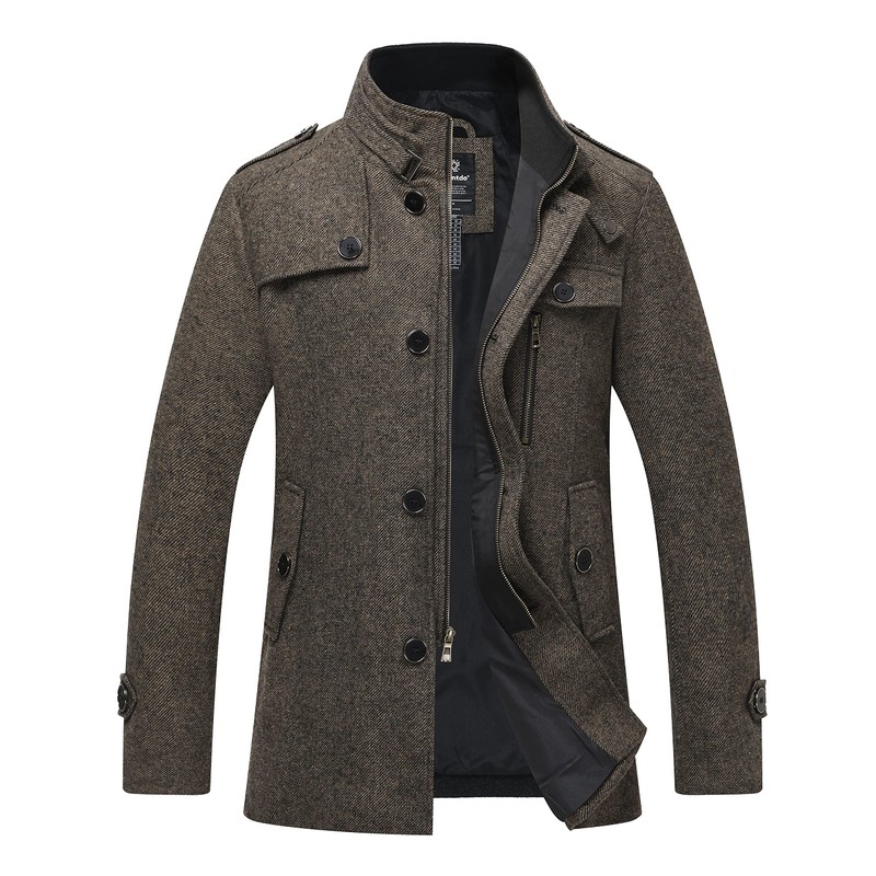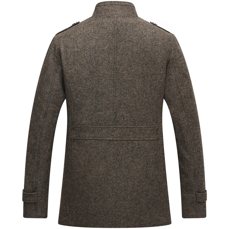High-quality buttons on the shoulder with the stand collar of this warm winter coat illustrate perfectly the classic military jacket style. Zip-front ribbed bib with the adjustable buckle of this men's jacket circles around your neck, adding warmth for you in heavy snow, storms, sleet, and cold weather. 2 side hand pockets of the men's coat keep necessities items like cards, earphones, and keys. These pockets in this wool overcoat can also help keep your hands warm in chilly winters. This men's winter jacket also has two inner pockets to secure your essentials.