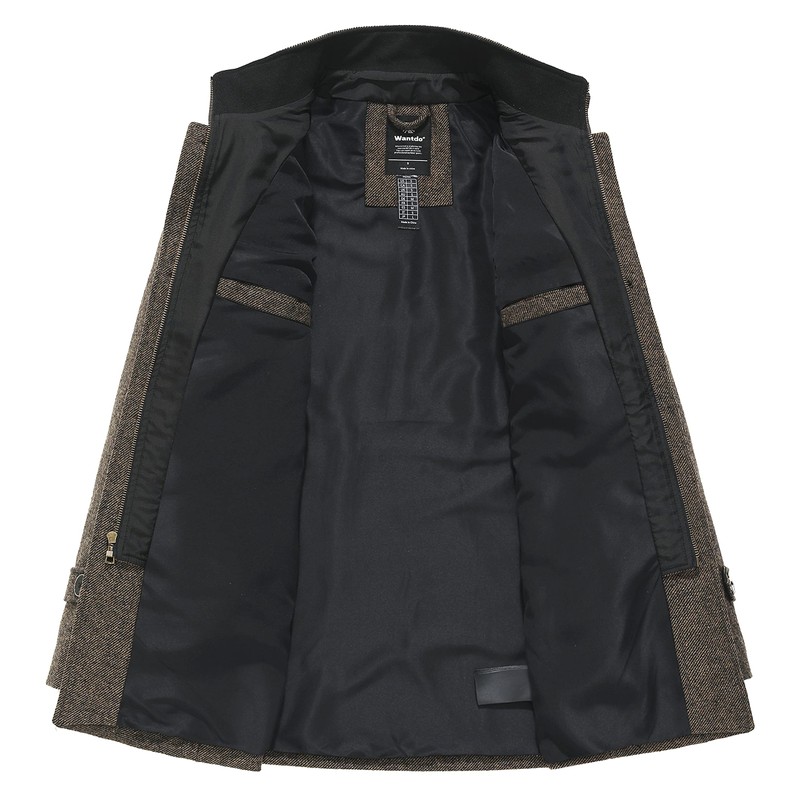 wantdo Men's Wool Autumn Trench Coat Windproof Jacket Overcoat Coffee Large